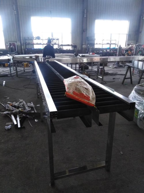 滾筒輸送機適用于各類箱、包、托盤等件貨的輸送,散料、小件物品或不規則的物品需放在托盤上或周轉箱內輸送。能夠輸送單件重量很大的物料,或承受較大的沖擊載荷,滾筒線之間易于銜接過渡,可用多條滾筒線及其它輸送機或專機組成復雜的物流輸送系統,完成多方面的工藝需要。可采用積放滾筒實現物料的堆積輸送。滾筒輸送機結構簡單,可靠性高,使用維護方便。滾筒輸送機適用于底部是平面的物品輸送,主要由傳動滾筒、機架、支架、驅動部等部分組成。具有輸送量大,速度快,運轉輕快,能夠實現多品種共線分流輸送的特點。滾筒輸送機結構形式:按驅動方式可分為動力滾筒線和無動力滾筒線,按布置形式可分為水平輸送滾筒線、傾斜輸送滾筒 線和轉彎滾筒線。還可按客戶要求特殊設計,以滿足各類客戶的要求。標準規滾筒線內寬度為200、300、400、500、1200mm等。也可按客戶需求采用其它特殊規格。轉彎滾筒線標準轉彎內半徑為600、900、1200mm等,也可按客戶需求采用其它特殊規格。直段滾筒所用的滾筒直徑有38、50、 60、76、89mm  滾輸送機的注意事項 :第一:物品在輸送的任何時間點,物品底部都必須有最少有三根滾與物品底部接觸  第二:滾筒輸送機先空載啟動,運行正常在放物料,停止放物料,再停機。